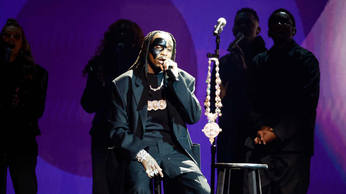 On Sunday night, February 5, the Migos rapper took the stage at the 2023 Grammy Awards as part of its annual In Memorium segment. During the somber performance, Quavo hung TakeOff's chain on the mic as he performed "Without You," alongside the Maverick City Music choir. Take's uncle and the choir also mixed Wiz Khalifa & Charlie Puth's "See You Again" into the performance as images of TakeOff, PnB Rock, Hurricane G, Coolio, Irene Cara and DJ Kay Slay flashed behind him.